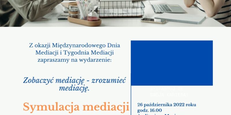 Z okazji tegorocznego Międzynarodowego Tygodnia Mediacji zapraszamy na wydarzenie „Zobaczyć mediację – zrozumieć mediację”. Z tej okazji Polskie Centrum Mediacji […]